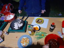 When we got back we found the others and started to cook dinner. We cooked some Korean food in our patrols. What I loved about the cooking is that we were just supplied the food and we had to choose what to do with it. Our patrol decided to cook some chicken coated in cornflower so it was a bit like a chicken nuggets (although it didn't look like the ones we get in the shops!). We also cooked some egg fried rice which pretty much just turned out like wet rice but we tried. We then added vegetables and ate it. While the food was cooking Callum and I made a really spicy sauce to go with the chicken. We spent at least a good 20 minutes perfecting the sauce. It tasted amazing ! ( especially with the chicken and rice ). We then washed up and chilled for a bit after that.